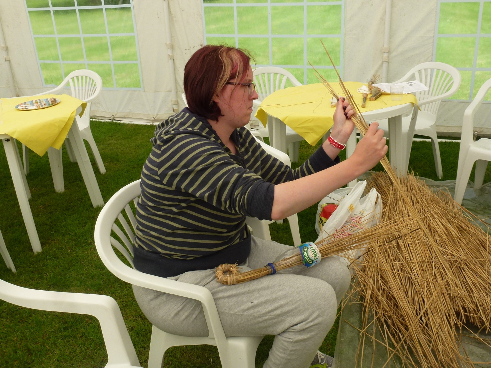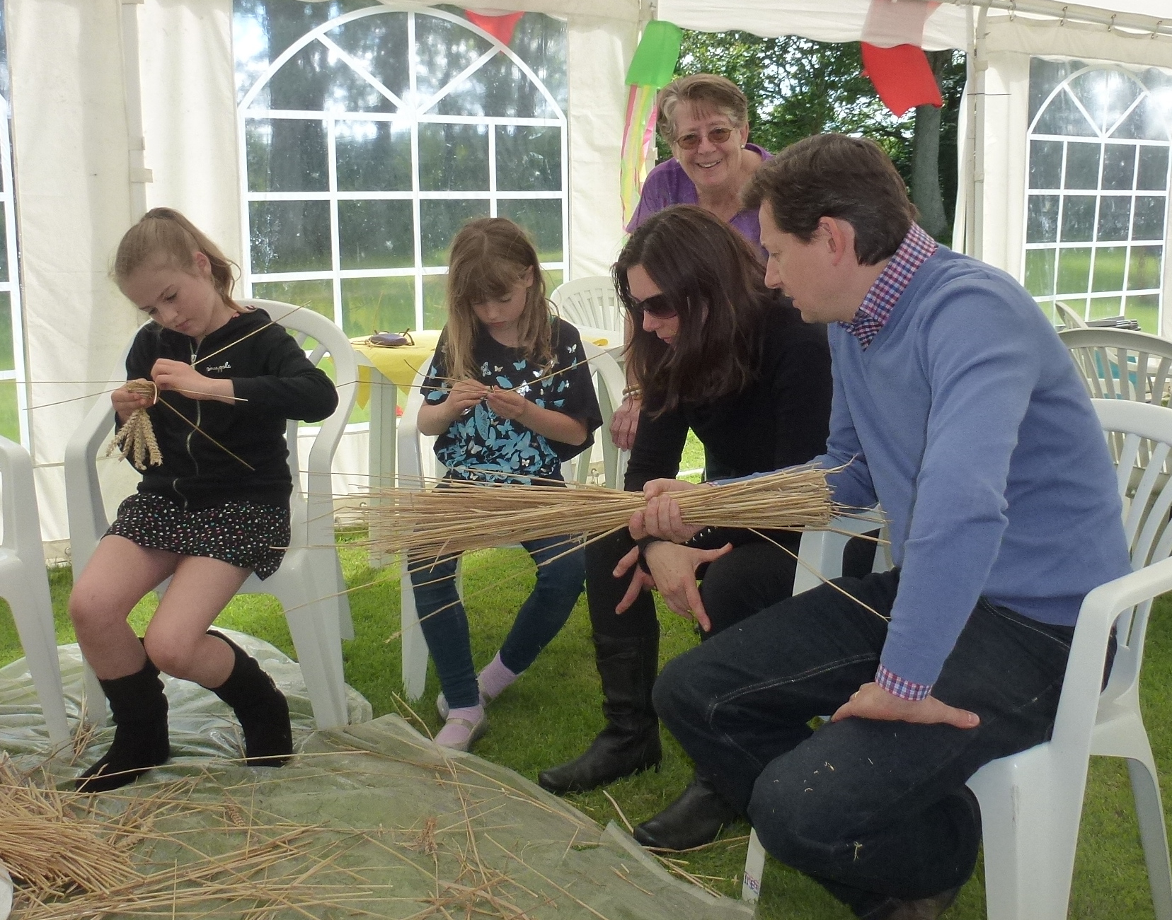 Thanks to Pat for the organisation, to Kaerron for slaving over the hot barbeque, Norrie for his patience teaching skep-making, Alan for his corn-dolly tuition and of course to Stan and Pam for hosting a glorious day.