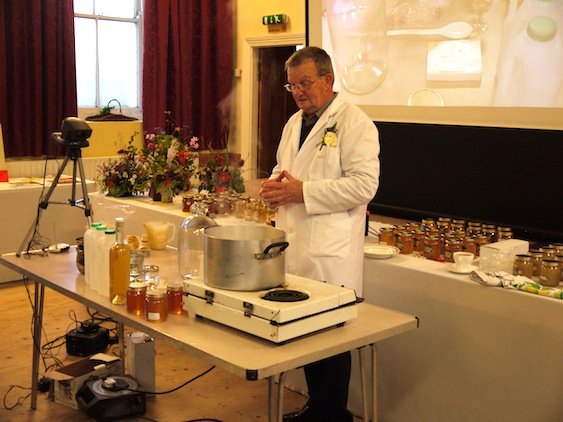 The BBKA Blue Riband for best exhibit in show went to Keaerron Shimmin with his splendid 12 jars class exhibit, and the Herbie Quirk Prize for contribution to beekeeping went to the inestimable Harry Owens.